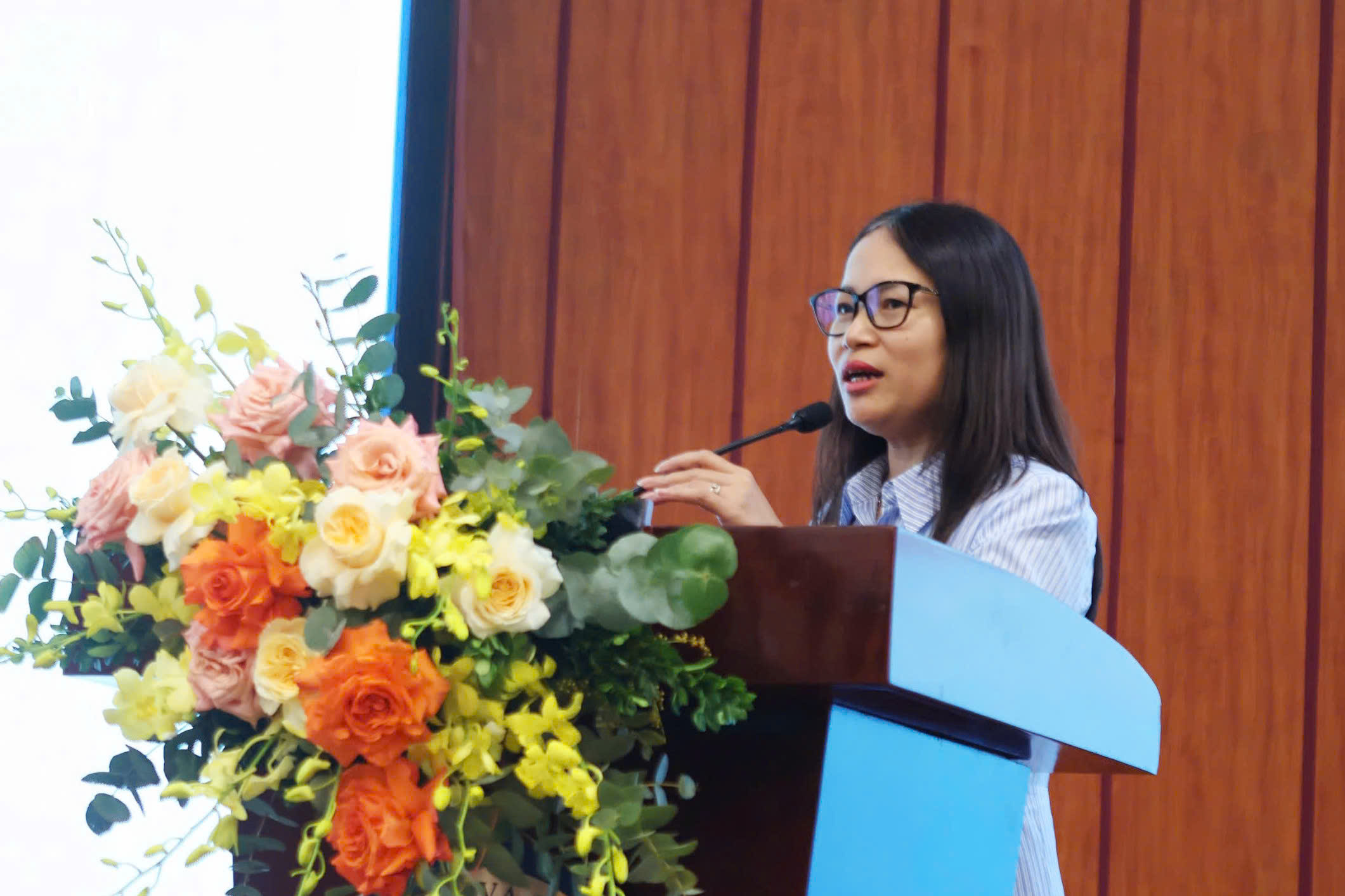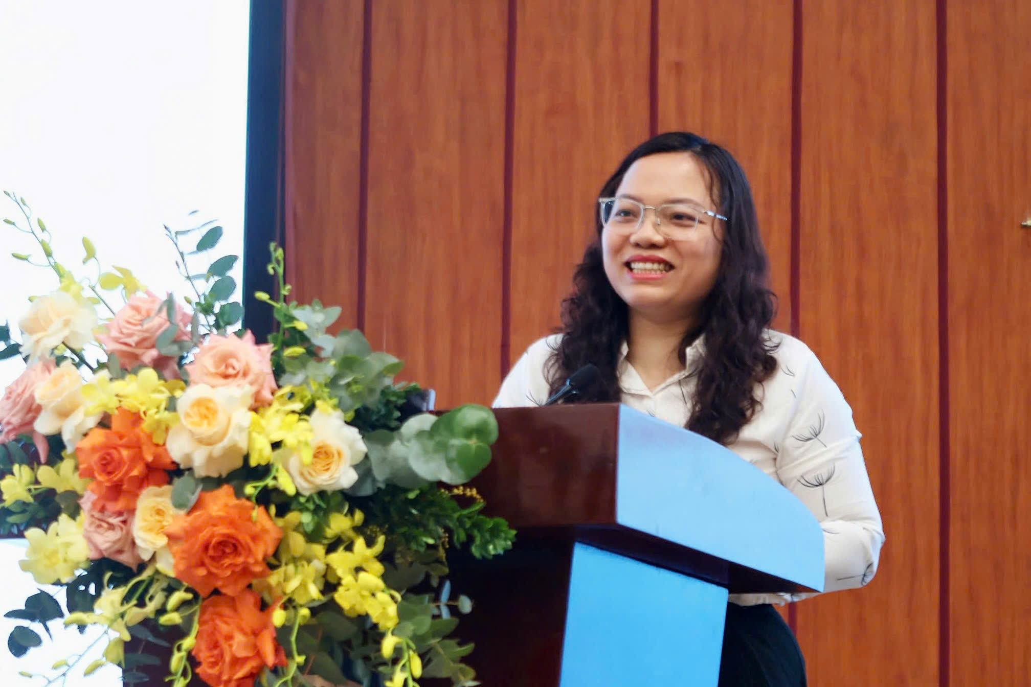 ThS. Trần Thị Thúy, Chuyên viên Vụ Hợp tác quốc tế phát biểu tại Hội thảo.