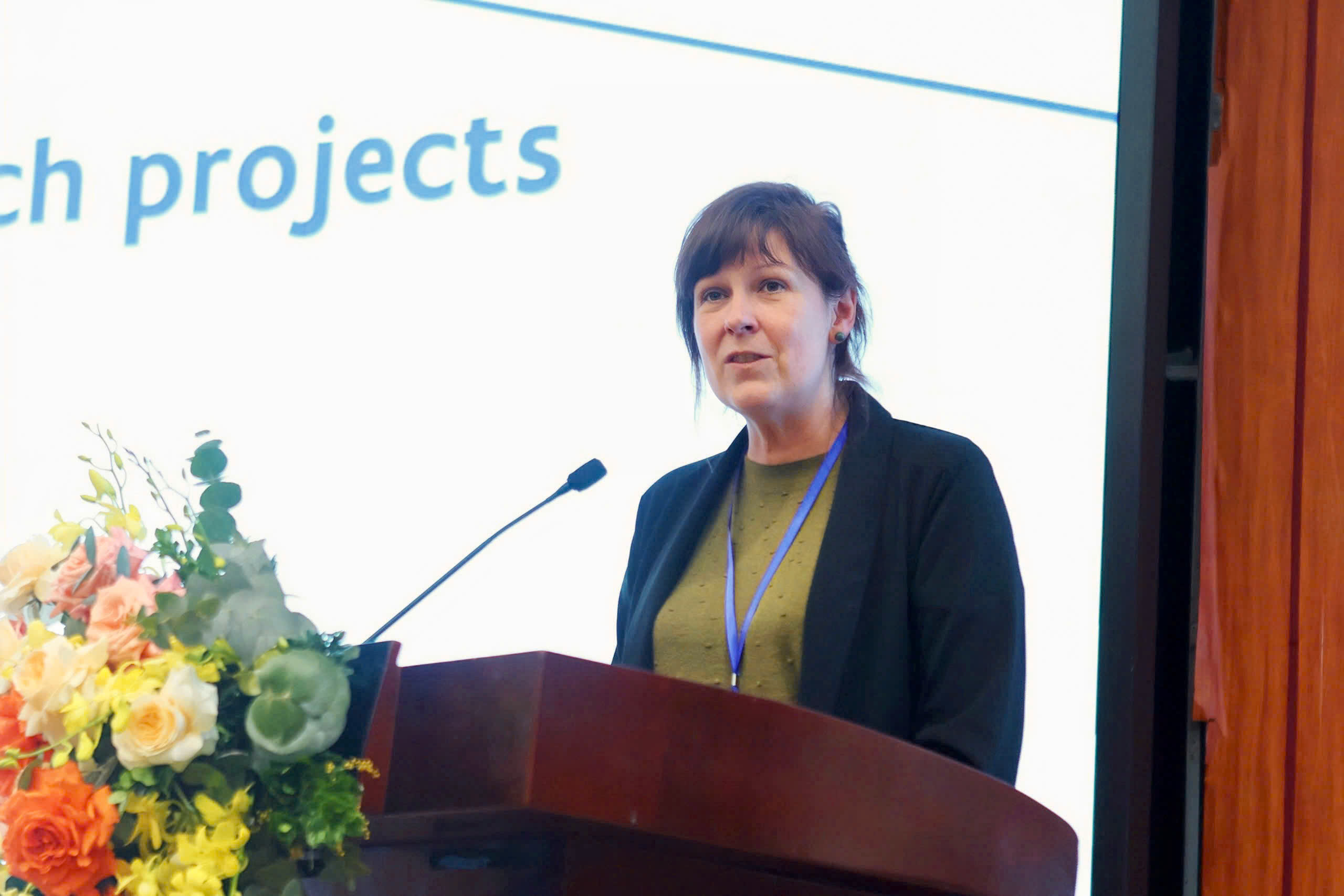 TS. Isabelle Verbaeys, Trưởng Khối Hợp tác quốc tế, Quỹ Nghiên cứu vùng Flanders, Bỉ (FWO) giới thiệu, kêu gọi đề xuất các dự án nghiên cứu chung giữa Việt Nam và FWO tại Hội thảo.