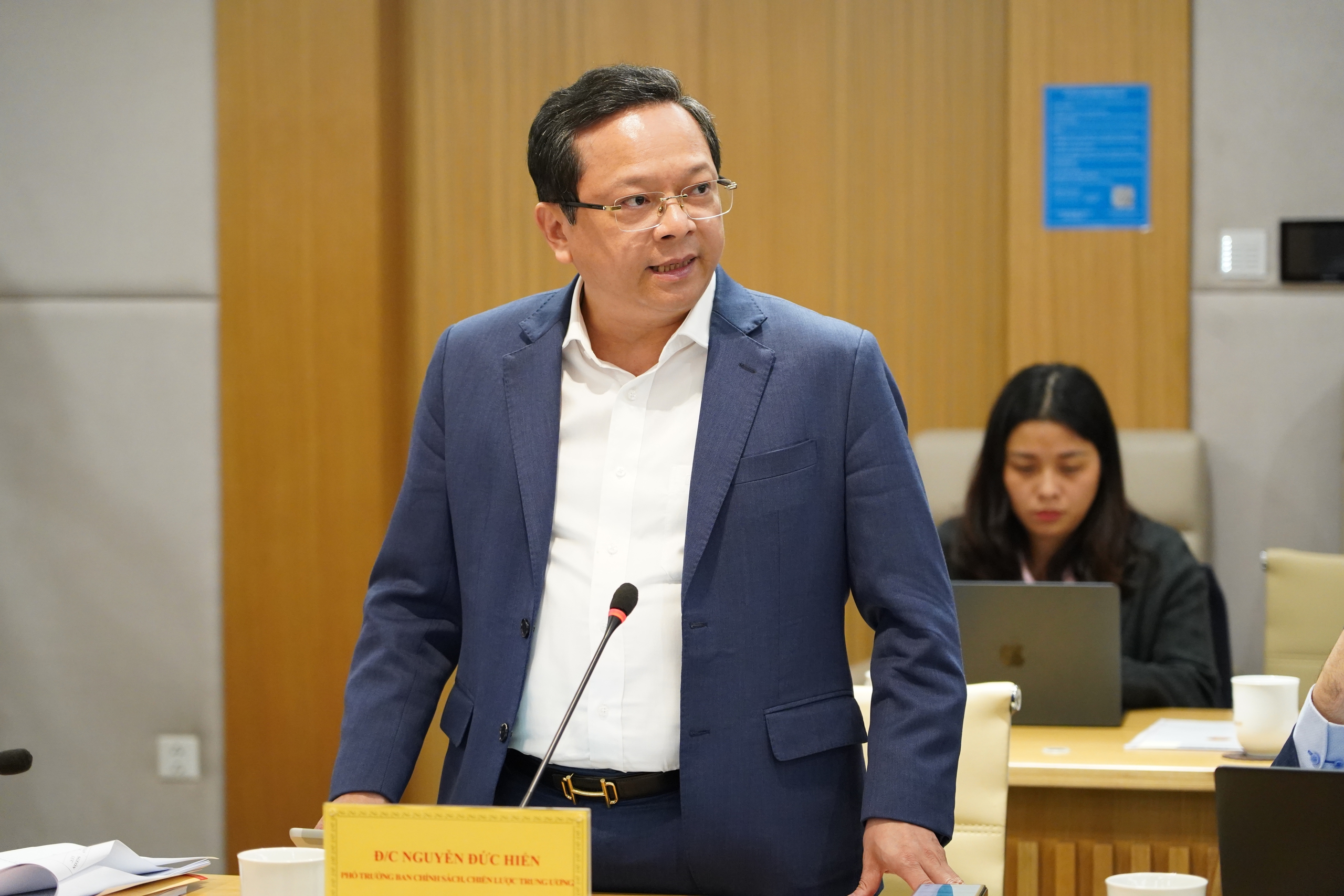Phó Trưởng Ban Chính sách, Chiến lược Trung ương Nguyễn Đức Hiển phát biểu tại cuộc họp.