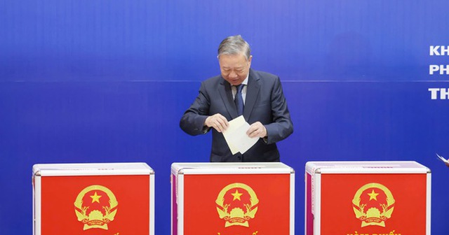 Tổng Bí thư Tô Lâm thực hiện quyền công dân, bỏ phiếu bầu đại biểu Quốc hội khóa XVI và HĐND các cấp nhiệm kỳ 2026-2031 - Ảnh: VGP